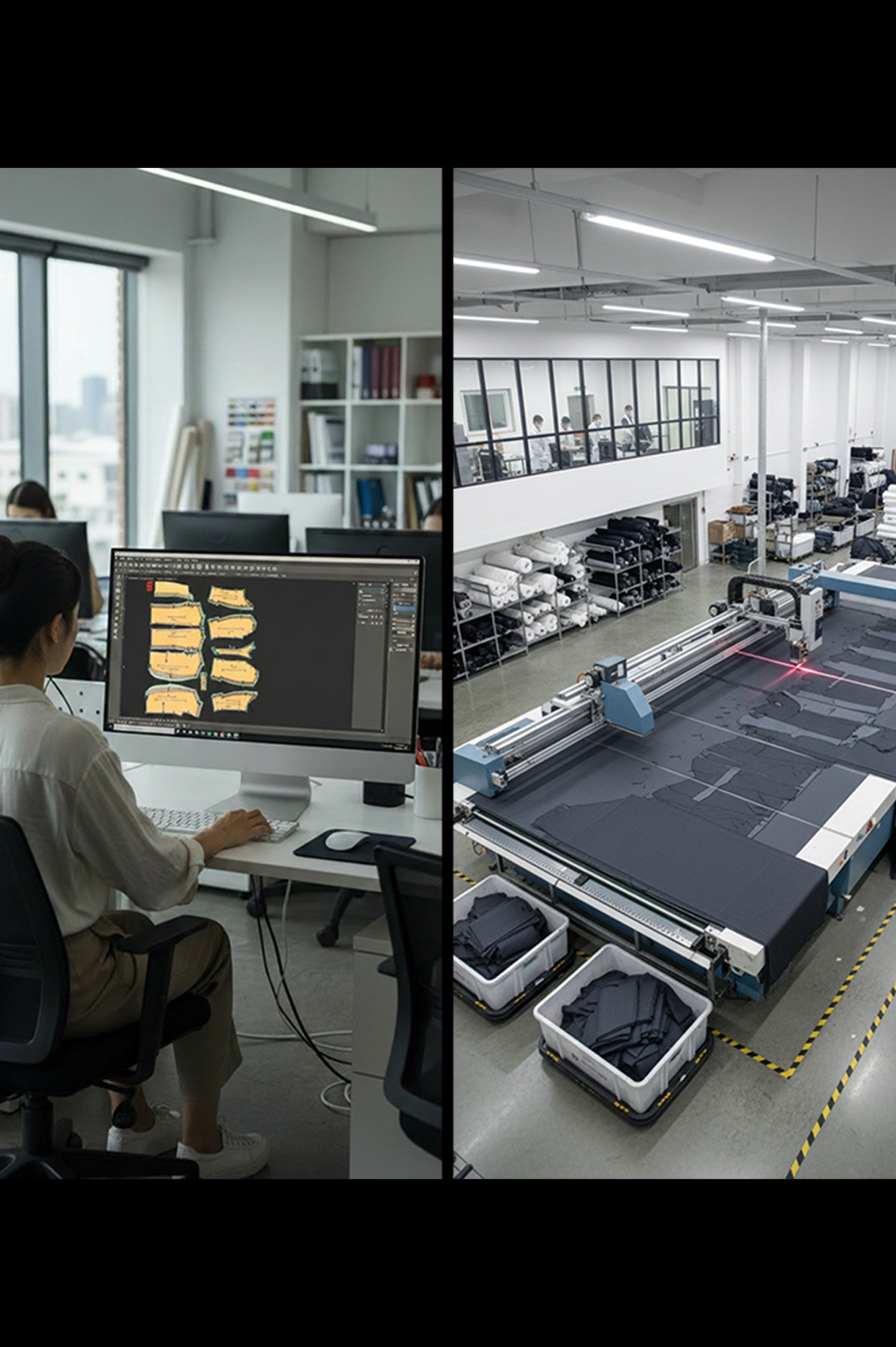 Behind the scenes, our global production network delivers premium, bespoke garments directly to customers worldwide — in as little as 14 days.